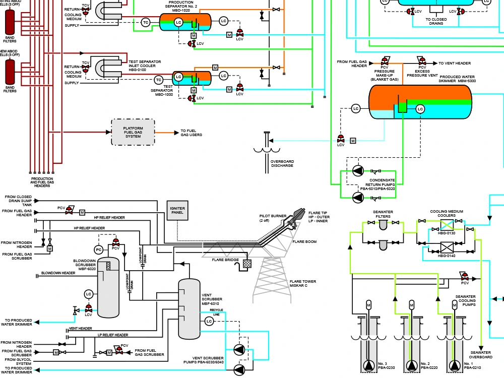 Orchid produces Piping and Instrumentation Diagrams (P&IDs) that clearly represent process systems, equipment and instrumentation for use in technical manuals, training and operational documentation.
